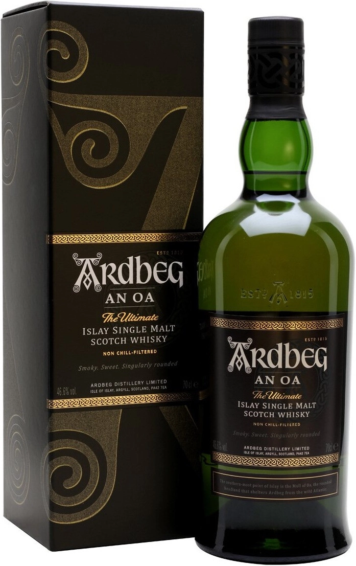 Ardbeg, "An Oa" — односолодовый виски, пополнивший регулярную линейку Ардбег в сентябре 2017 года. Виски получил свое название в честь мыса Оа (на гаэльском наречии он называется An Obha), который защищает южное побережье Айлы от сильных ветров с Атлантики. Этот округлый драм гармонично сочетает силу дымных нот и восхитительную сладость. Спирты для создания "An Oa" выдерживались в бочках из-под бурбона, бочках из-под сладкого хереса Педро Хименес и новых дубовых бочках. Окончательная смесь дозревала в новых бочках "Gathering Vat" из французского дуба, созданных по особой спецификации Билла Ламсдена. Общий срок выдержки составляет как минимум 3 года. Как и все последние релизы винокурни, "Эн Оа" был бутилирован без холодной фильтрации и указания возраста.