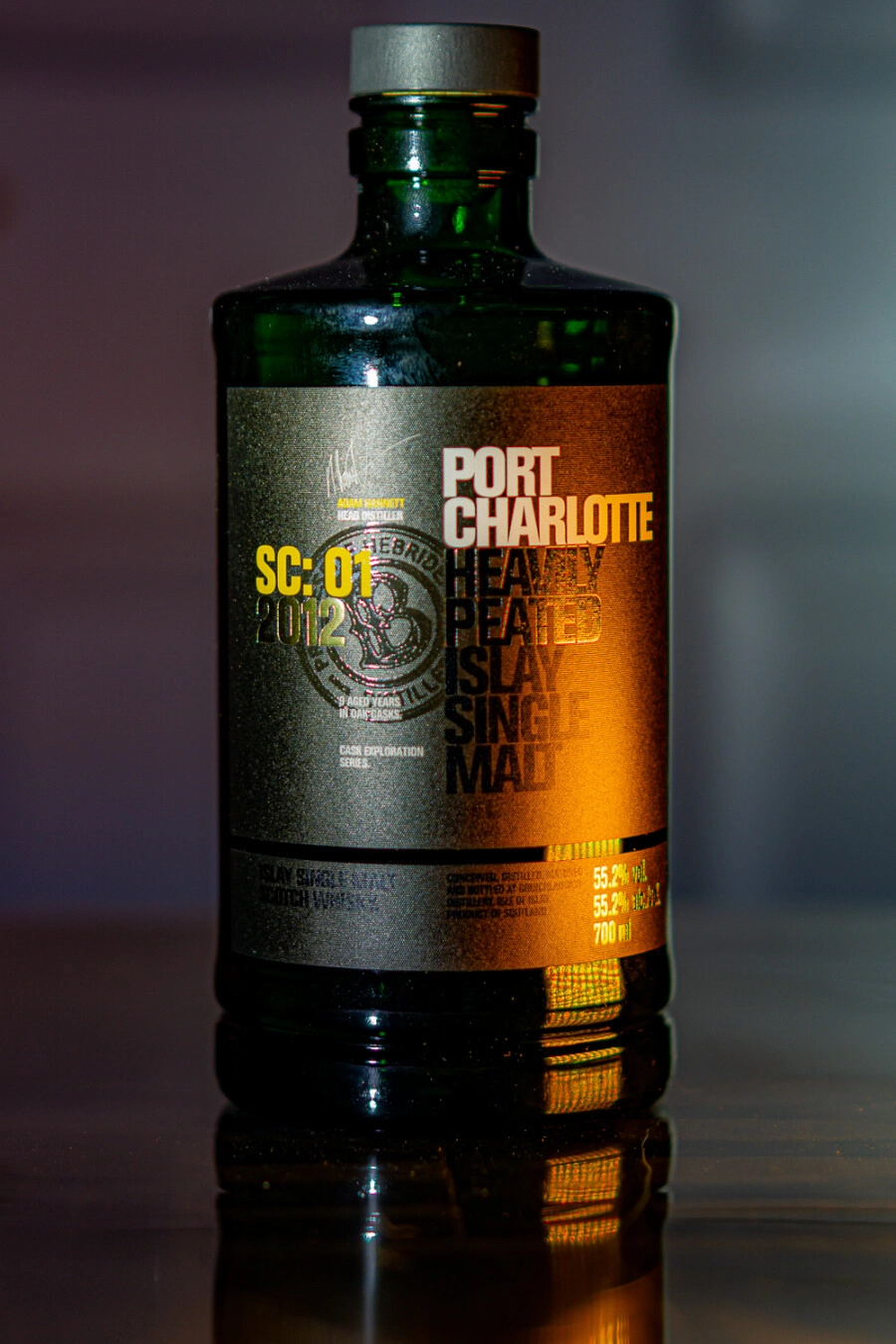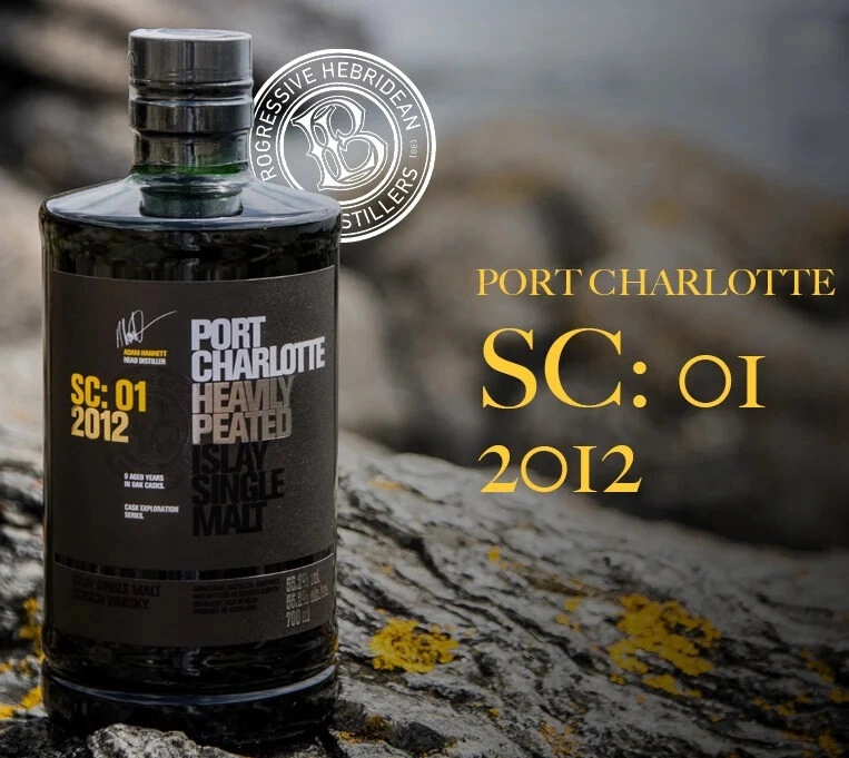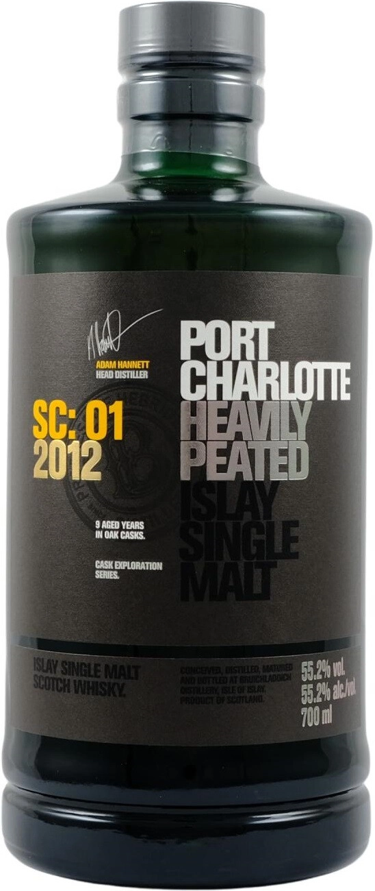 "Port Charlotte" SC: 01 сочетает в себе две величайшие страсти винокурни Bruichladdich: бескомпромиссное происхождение и изысканный французский дуб. Впервые в серии Cask Exploration этот напиток изготовлен из 100% ячменя с острова Айла. Виски был дистиллирован в 2012 году. В производстве использовался ячмень 2011 года урожая, собранный 7 партнерами-фермерами. Все фермы расположены в радиусе 16 км от ликеро-водочного завода. Отдавая должное терруару острова Айла, характер местного ячменя дополняется сложным процессом выдержки. Первоначально ячмень был соложен с содержанием торфа 40 PPM на солодовне на материковой части Шотландии. Затем его привезли на остров и перегоняли в длинных перегонных кубах с узким горлышком, где дистиллят приобрел элегантность и утонченность. Далее он прошел три разных пути своего созревания. Часть виски созревала в бочках из-под хереса, другая часть выдерживалась в бочках из-под американского виски второго наполнения, третья часть хранилась в смеси бочек из-под американского виски первого и второго наполнения, после чего все партии дозревали в бочках из-под Сотерна. В результате получился сложный виски, обладающий классическим характером торфяных односолодовых виски: нежные цветочные ноты можжевельника дополняют медовый кокос и помадку, которые сливаются с торфяным дымом барбекю "Port Charlotte".