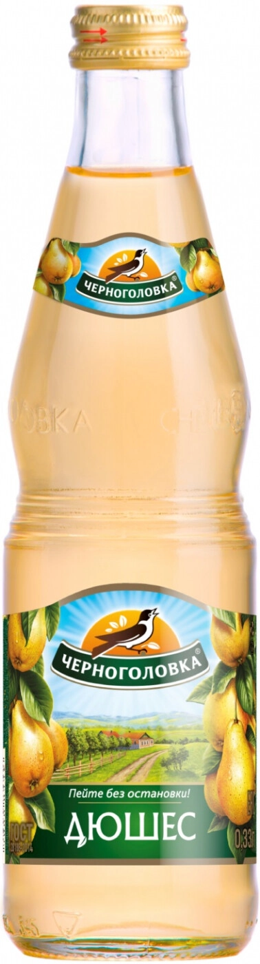 "Черноголовка" Дюшес — сильногазированный безалкогольный напиток со вкусом и ароматом груши сорта "Дюшес", который отлично освежит в течение всего дня. В его производстве используется артезианская вода, натуральные экстракты и сок.