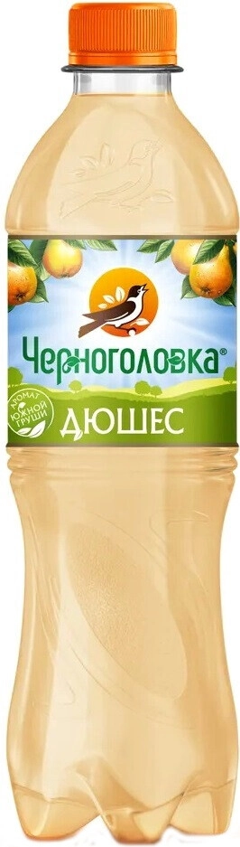 "Черноголовка" Дюшес — сильногазированный безалкогольный напиток со вкусом и ароматом груши сорта "Дюшес", который отлично освежит в течение всего дня. В его производстве используется артезианская вода, натуральные экстракты и сок.